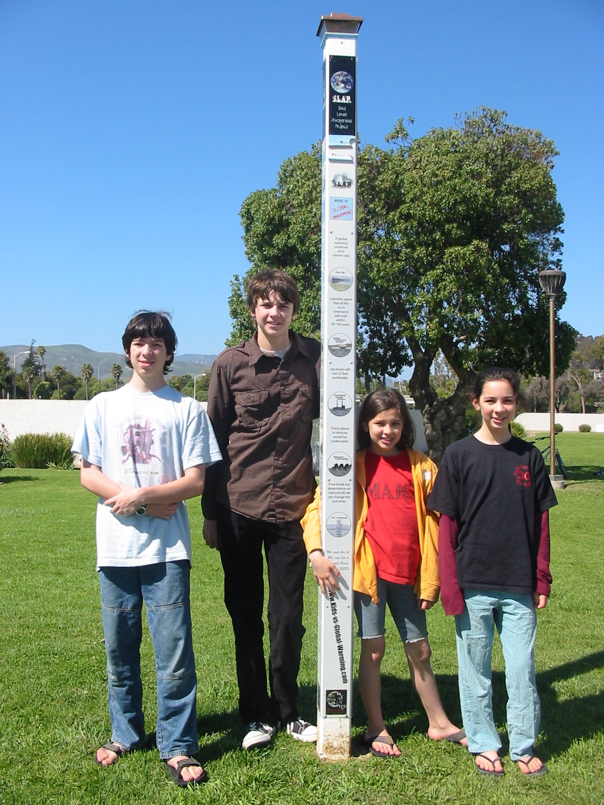 We are working on a project designed to make the concept of sea level rise easier to visualize. We hope to install an art/environmental activist/educational project along the Boardwalk down at the beach that will raise awareness of this issue in San Diego. Sometime in 2009, we hope to install the first SLAP poles, showing where the sea level will be if nothing is done to curb the current rate of global warming.